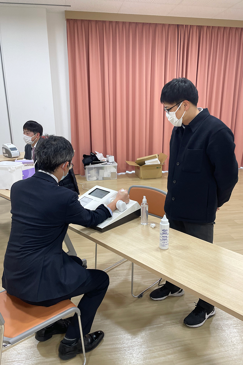 健康測定の様子(左:槇田崇志副薬剤部長,右:三浦太郎助教)