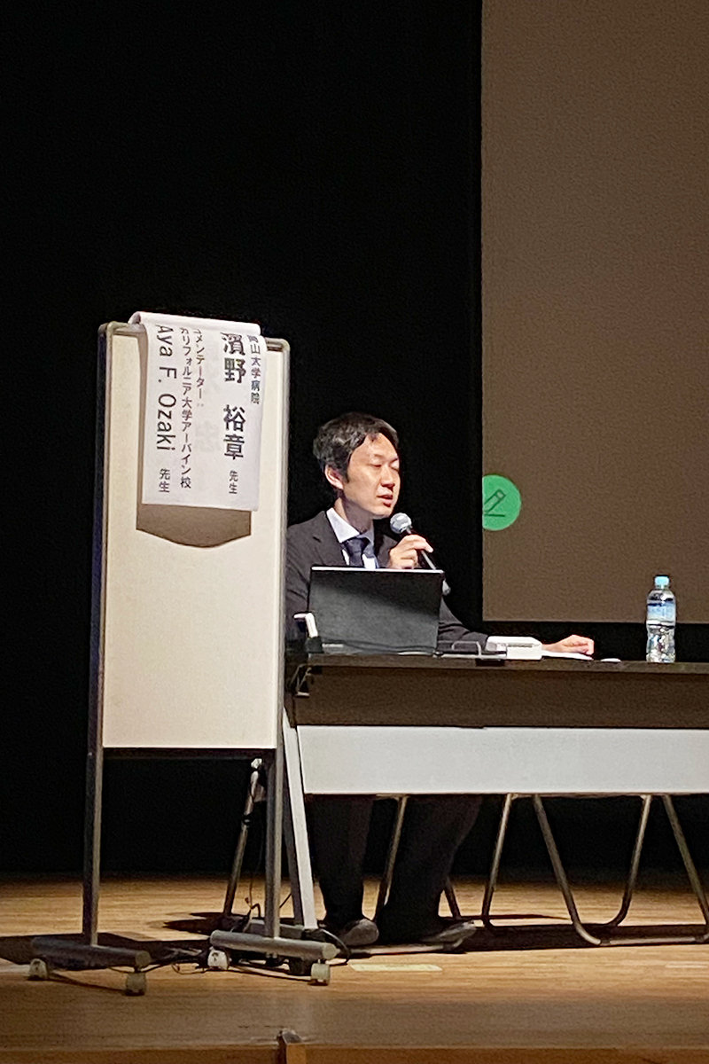 本学からは、座間味 義人 教授が教育講演「Pharmacist Clinicianとしての業務内容や実際」(講師:武田 三樹子〈米国ニューメキシコ大学・准教授〉)の座長を務め、海外の臨床現場に根ざした議論を展開しました。さらに、濱野 裕章 講師がシンポジウム「アカデミック・ディテーリングの実践」の座長として、現場での活用にフォーカスしてセッションを統括しました。同シンポジウムの発表では、田中 雄太 副薬剤部長が「岡山大学病院薬剤部におけるアカデミック・ディテーリングの実践と工夫」をテーマに、薬学実習や薬剤師新人教育における処方提案のプロセス設計、教育・評価の枠組み、現場での実践上の工夫を具体例とともに紹介し、参加者との活発な質疑が交わされました。