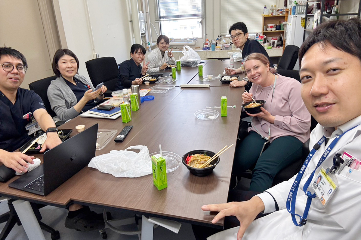 また、病棟薬剤師、外来薬剤師、セントラル担当薬剤師を交えた交流会を開催しました。Ida Pihlaja 先生からは、Helsinki University Hospital における薬剤部門の体制に加え、フィンランドで進められている薬剤師の専門性強化やタスクシフトの取り組みについてご紹介いただき、日本側にとっても大変刺激的な内容となりました。あわせて、将来的に薬剤師業務に関連する国際共同研究として発展しうるテーマについても意見交換を行い、今後も継続的に情報交換を続けていく方針を共有しました。