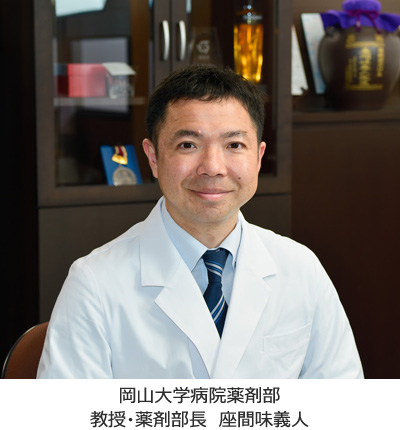 この度、岡山大学病院薬剤部の前薬剤部長であられた千堂年昭先生の後任として、令和3年9月1日付けで薬剤部長を拝命しました座間味義人と申します。まだまだ若輩者で至らない部分も多いですが、日本有数の歴史と伝統を誇る岡山大学病院の一員として薬剤部運営を担当させていただける名誉に恥じないよう、業務に臨む決意を新たにしたところであります。